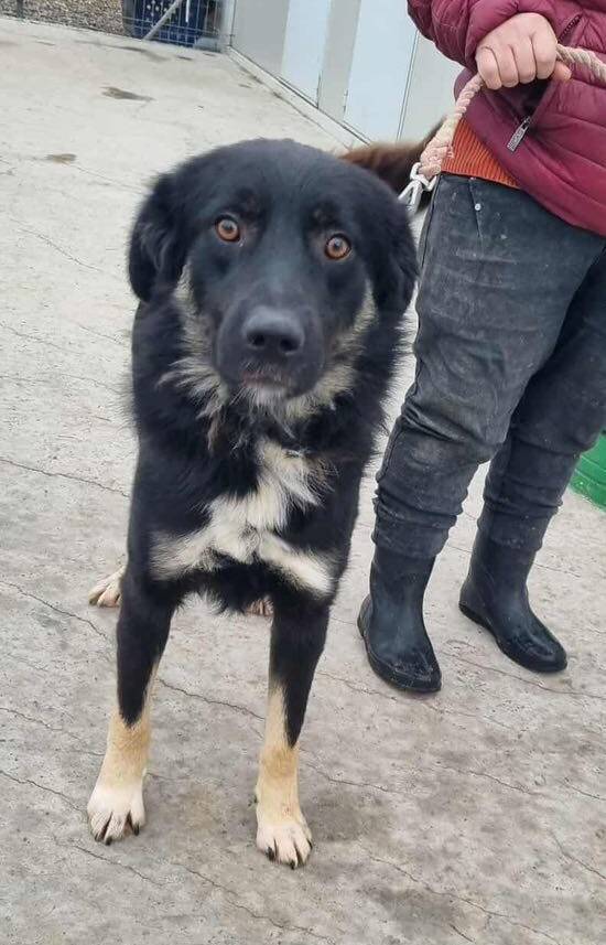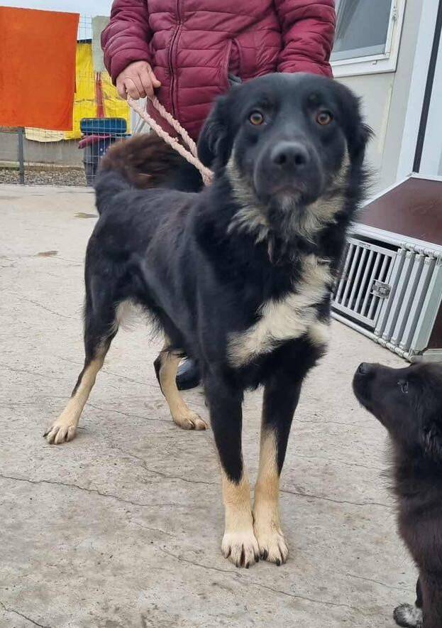 Beschreibung: Onyx ist ein etwa drei Jahre alter Rüde (Stand Februar '26) – ein sehr schöner, sanftmütiger und freundlicher junger Hund. Wahrscheinlich wurde er von seinen Besitzern beim Wegzug zurückgelassen und somit sich selbst überlassen. In der Nachbarschaft fiel er immer auf. Er suchte den Kontakt zu den Menschen, wollte am liebsten sofort mitkommen und rannte wegfahrenden Autos hinterher. Unser rumänisches Team nahm sich ihm an und so kam er in das Shelter in Sendreni.