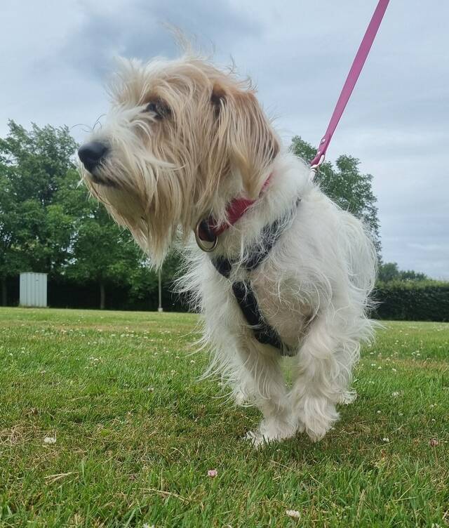 - Ich bin natürlich stubenrein und kann prima an der Leine laufen.