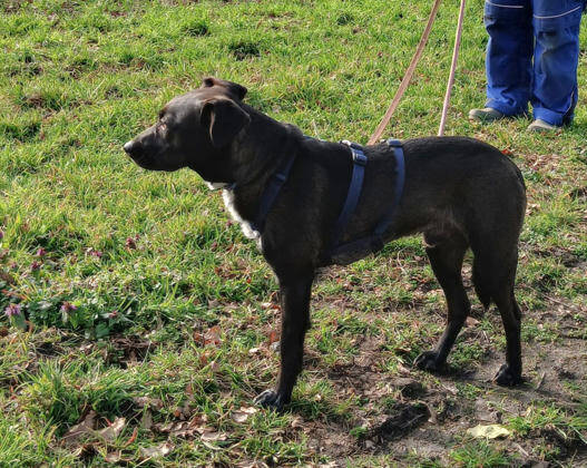 Unser Porthos1 ist recht schüchtern, insbesondere gegenüber Männern. Frauen öffnet der Rüde sich leichter. Wenn er mit seinen Hundekumpels unterwegs ist, orientiert er sich an ihnen, daher wäre ein weiterer Artgenosse in seinem neuen Zuhause toll. Im Augenblick fürchtet er sich noch vor hektischen schnellen Bewegungen und lauten Geräuschen aber daran wird bereits gearbeitet. Porthos1 ist neugierig und verspielt. Er ist stubenrein, steigt Treppen und läuft bereits recht gut an der Leine. Auch im Auto ist er bereits problemlos mitgefahren. Ein Jagdtrieb wurde bisher nicht festgestellt. Zu Ponys, Hühnern, Enten, Schweinen und Katzen hält er (noch) einen Sicherheitsabstand, bellt sie aber weder an noch rennt er weg. Das Hunde-ABC ist ihm noch fremd, aufgrund seiner Neugierige können wir uns aber vorstellen, dass er alles notwendige schnell lernen wird.