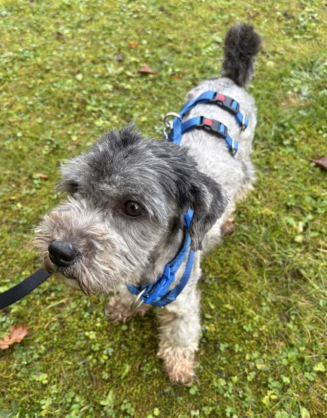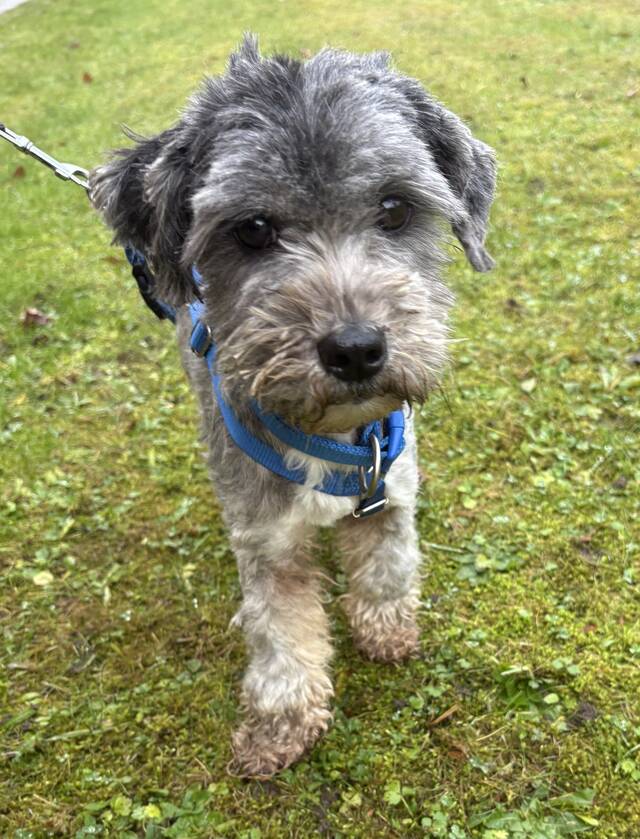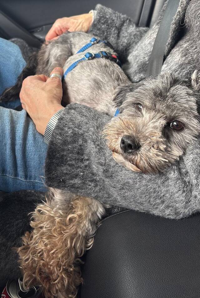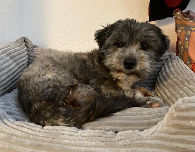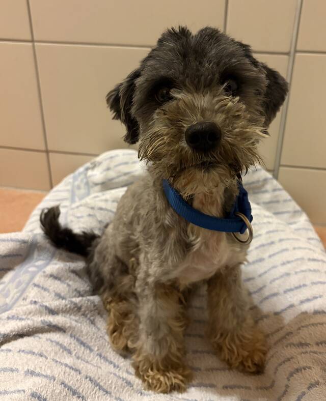 Sophie Mix Hündin, geboren am 10.04.2023, hat eine Schulterhöhe von ca. 30 cm und wiegt etwa 6 kg.