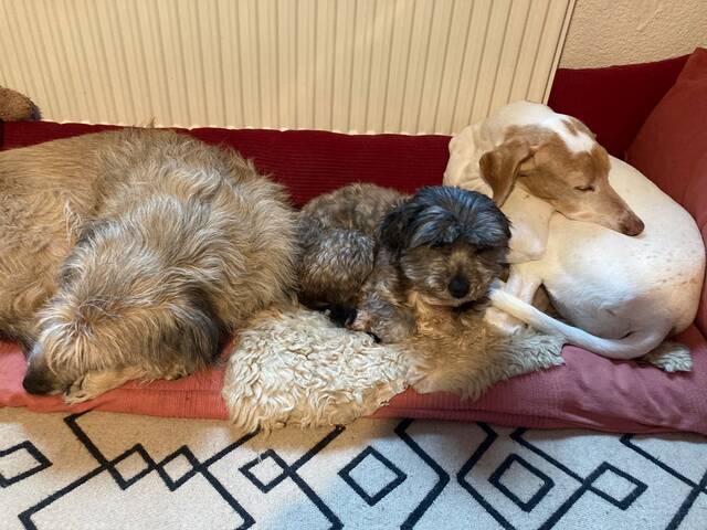 Bei uns auf Pflegestelle lebt sie im Moment mit zwei weiteren Hunden zusammen. Sie zeigt sich ihnen gegenüber verträglich; menschliche Gesellschaft ist ihr aber noch wichtiger .