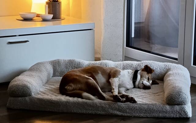 Paris ist eine ganz wunderbare, kleine Hündin. Auf ihrer Pflegestelle (mit Kind und Katze) zeigt sie sich als sehr sensibel, verschmust, lernwillig, sie hat ein unglaublich liebes und sanftes Wesen. Sie liebt lange Spaziergänge und geht auch mit mir joggen, wo sie sogar schon frei läuft und gut abrufbar ist. Im Haus kann Paris auch gut Ruhe halten, schläft entspannt stundenlang im Korb, am liebsten in der Nähe ihrer Menschen, bleibt aber auch vollkommen problemlos vier Stunden alleine. Die Kameraüberwachung zeigt, dass sie dann einfach schläft oder sich ein bisschen mit ihrer Kaustange beschäftigt. Sie hat noch nie irgendetwas kaputt gemacht oder an Türen gekratzt. Hundebegegnungen findet sie spannend und ist etwas aufgeregt, ist aber dort auch total verträglich, spielt gerne mit den geeigneten Hunden und ist alles in allem ein total unkomplizierter Traumhund. Meine achtjährige Tochter geht alleine mit ihr Gassi. Autofahren meistert sie großartig. Selbst Silvester hat sie souverän und cool gemeistert. Sie ist eine unkomplizierte und gute Fresserin.