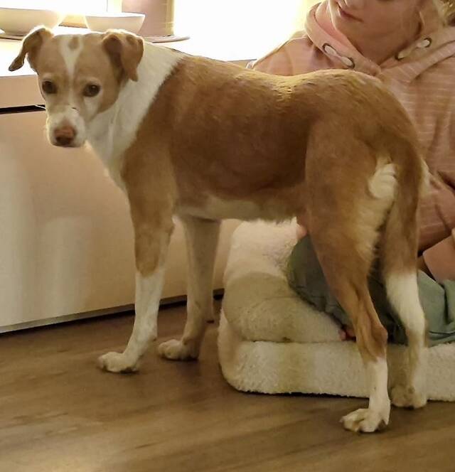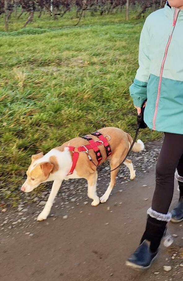 Paris (4413) Mix Hündin, geboren am 02.11.2021, hat eine Schulterhöhe von 47 cm und wiegt 10 kg.