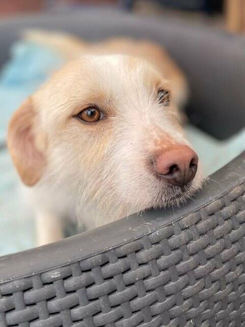 Die vermutlich klein bleibende Junghündin Naomi wurde gemeinsam mit ihren Geschwistern und ihrer Mutter verlassen auf der Straße gefunden. Nach einem holprigen Start in ihr Hundeleben, hoffen wir auf ihr baldiges großes Glück: ein liebevolles Plätzchen für ihr hoffentlich langes Leben.