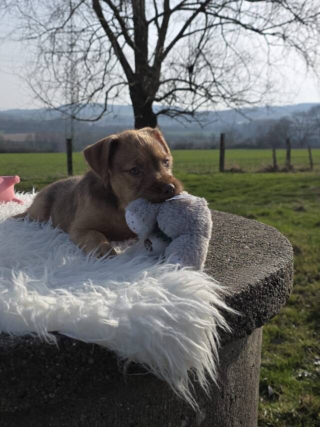 Wir alle drei sind lustige, fröhliche Hundekinder, die noch ganz viel lernen möchten. Dinge wie Leine laufen, Stubenreinheit oder Hundeschule kennen wir noch nicht, aber wir sind neugierig und ganz bestimmt gute Schülerinnen.
