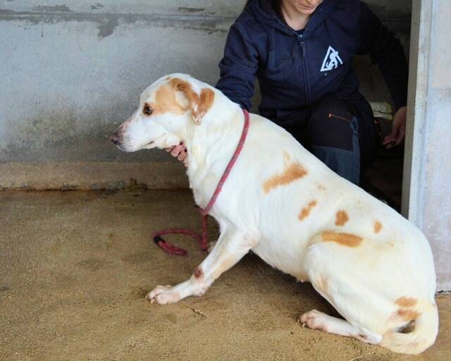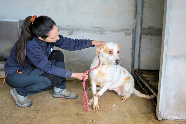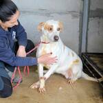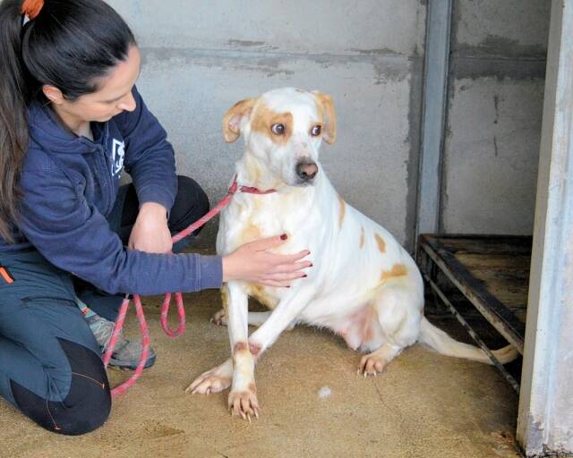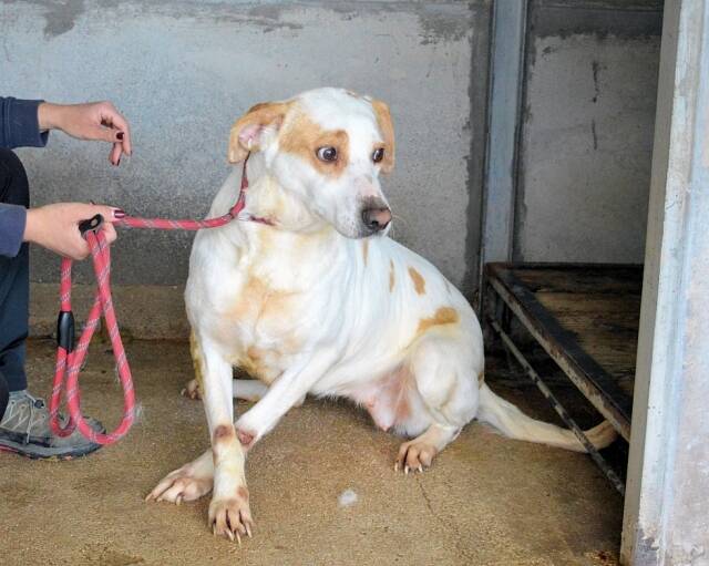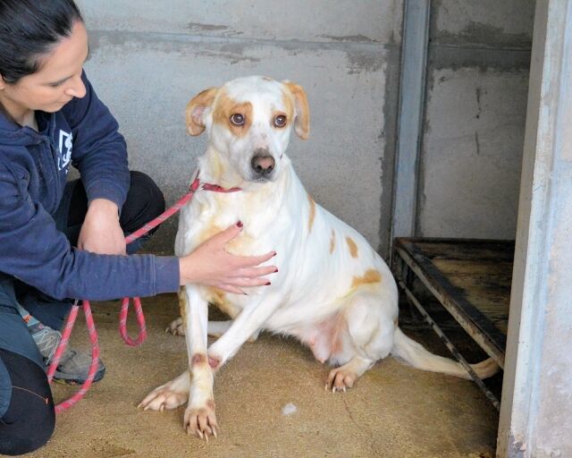 Rhoswen und ihre beiden Leidensgenossen sind noch nicht lange dort. Sie leben zusammen in einem Zwinger. Rhoswen reagiert auf Menschen zunächst mit Rückzug. Sie lässt sich aber, wenn auch sehr zögerlich, mit etwas Geduld anfassen. Im Umgang mit anderen Hunden hingegen ist sie sehr verträglich.
