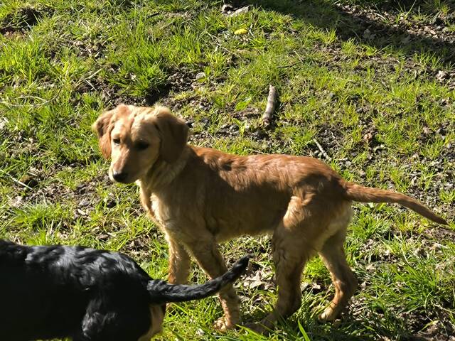 Mia und ihre Geschwister sind welpentypisch fröhlich, verspielt, lustig und haben nach wie vor guten Appetit. Die Geschwister sind ca. 16 Wochen alt und könnten Setter-Mixe sein, sofern man dazu etwas sagen kann, da weder Mutter noch Vater bekannt sind. Die kahlen Stellen im Fell (bedingt durch den Parasitenbefall), die die Welpen noch teilweise am Körper haben, werden in einigen Wochen verschwunden sein. Das Fell wird nachwachsen und es werden keine kahlen Stellen mehr zu sehen sein. Ganz bestimmt wird Mia dann eine bildschöne, junge Hündin sein.
