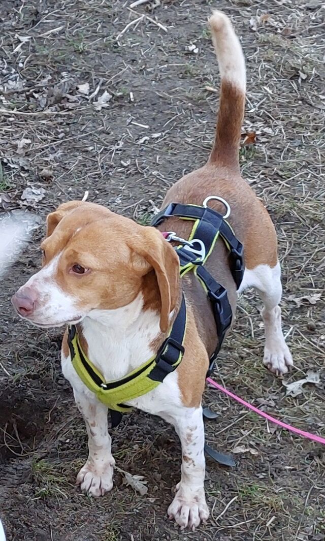 Beagle-Mix Dana aus Spanien kam Ende Februar in Deutschland an und wurde leider zum Rückläufer. Danke an Katrin aus unserem Team, die Dana dann sofort als Pflegehund bei sich aufgenommen hat. Dana wurde in Spanien auf der Straße gefunden. Im Tierheim kam sie verstört, verängstigt und verwahrlost an und wurde aufgrund dessen auf etwa 10 Jahre geschätzt. Bei der tierärztlichen Untersuchung wurde dann festgestellt, dass Dana höchstens fünf Jahre alt ist, eher jünger. Dana wurde schon einmal vermittelt, leider hat es dort nicht gepasst und deshalb suchen wir jetzt für sie ihr "perfekt home"...