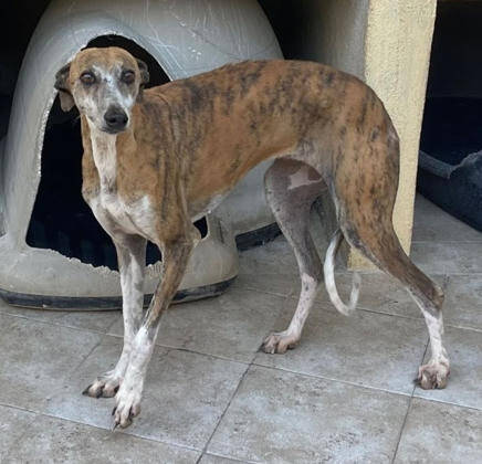 Das ist unsere Mara8, sie kam zusammen mit einigen anderen Galgos ins Shelter von Jaén. Vermutlich gehörten sie einem Jäger und wurden am Ende der Jagdsasion aussortiert. Ab Mitte Februar 2026 ist sie bei uns in der Vermittlung. Gemeinsam sind wir auf der Suche nach einem Zuhause für die Hündin oder auch eine Pflegestelle, die sie vorübergehend aufnehmen kann.