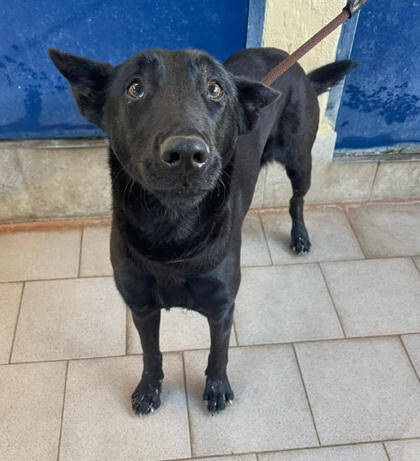 Bombon6 wurde von einigen Landarbeitern auf einem Feld gefunden, auf dem sie Oliven ernteten. Sie verbrachte den ganzen Tag bei ihnen, und als die Arbeiter nach Hause fuhren, lief sie hinter ihrem Auto her, sodass sie anhielten und sie mitnahmen. Sie brachten die Hündin ins Shelter, da sie selbst keinen Platz für sie hatten. Nun sind wir seit Mitte März 2026 auf der Suche nach einem Zuhause/Pflegestelle für sie.