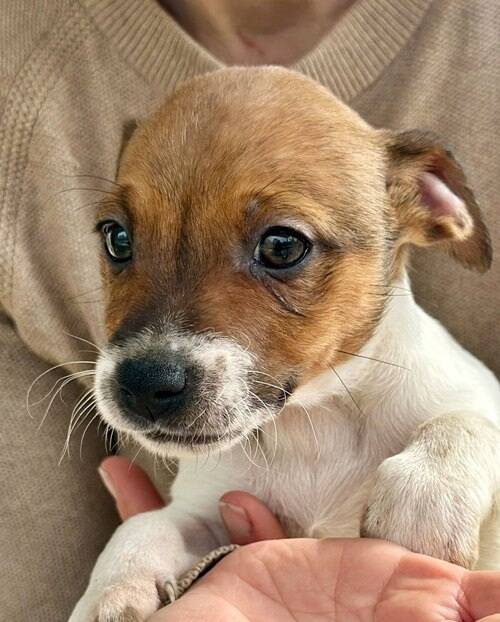 März 2026: Amber, Fine, Jacky, Berti & Toby kamen zusammen mit ihrer Mama Mia ins Tierheim als sie gerade mal einen Tag alt waren. Wir sind froh, dass wir der kleinen Familie die Chance auf eine sichere Zukunft geben konnten. Sie sind allesamt ganz bezaubernd und freundlich und die kleinen Racker altersgerecht verspielt. Die 4 braun-weißen Welpen sehen aus wie ihre Mama und werden ausgewachsen vermutlich eine ähnliche Größe erreichen - aktuell wiegen sie um die 3kg. Bruder Toby wirkt dagegen wie ein Kuckuckskind und wiegt aktuell um die 6kg - er wird wohl etwas größer werden als seine Geschwister (geschätzt um die 15kg ausgewachsen, aber die Angabe ist natürlich ohne Gewähr ;-)).