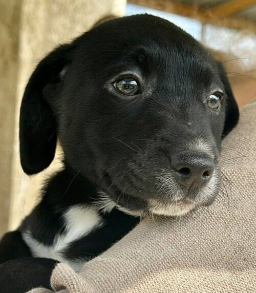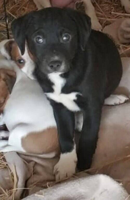 März 2026: Amber, Fine, Jacky, Berti & Toby kamen zusammen mit ihrer Mama Mia ins Tierheim als sie gerade mal einen Tag alt waren. Wir sind froh, dass wir der kleinen Familie die Chance auf eine sichere Zukunft geben konnten. Sie sind allesamt ganz bezaubernd und freundlich und die kleinen Racker altersgerecht verspielt. Die 4 braun-weißen Welpen sehen aus wie ihre Mama und werden ausgewachsen vermutlich eine ähnliche Größe erreichen - aktuell wiegen sie um die 3kg. Bruder Toby wirkt dagegen wie ein Kuckuckskind und wiegt aktuell um die 6kg - er wird wohl etwas größer werden als seine Geschwister (geschätzt um die 15kg ausgewachsen, aber die Angabe ist natürlich ohne Gewähr ;-)).