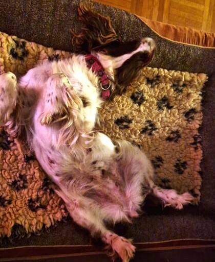 Die Hündin ist ein English Springer Spaniel, dieser robuste Jagdhund mit dem zumeist freundlichen Wesen bindet sich eng an seinen „Rudelchef“ und weicht diesem nur selten von der Seite. Er braucht eine sinnvolle Aufgabe und muss sowohl geistig als auch körperlich ausgelastet werden. Wenn das passiert, zeigt sich der temperamentvolle und arbeitswillige English Springer Spaniel in den eigenen vier Wänden ruhig und ausgeglichen.
