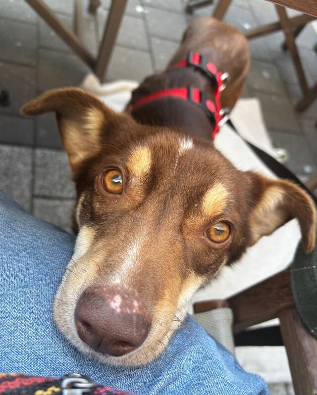 Emil, Mix Rüde, geboren am 03.10.2024, hat eine Schulterhöhe von ca. 46 cm und wiegt ca. 14 kg.