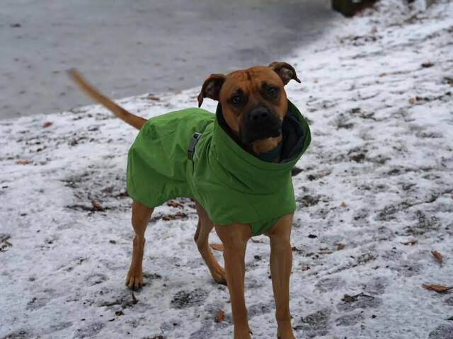 Da sein Phänotyp einem Kategorie-Hund ähnelt, darf Mocca nicht im Raum Hamburg vermittelt werden.