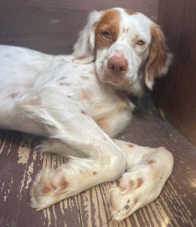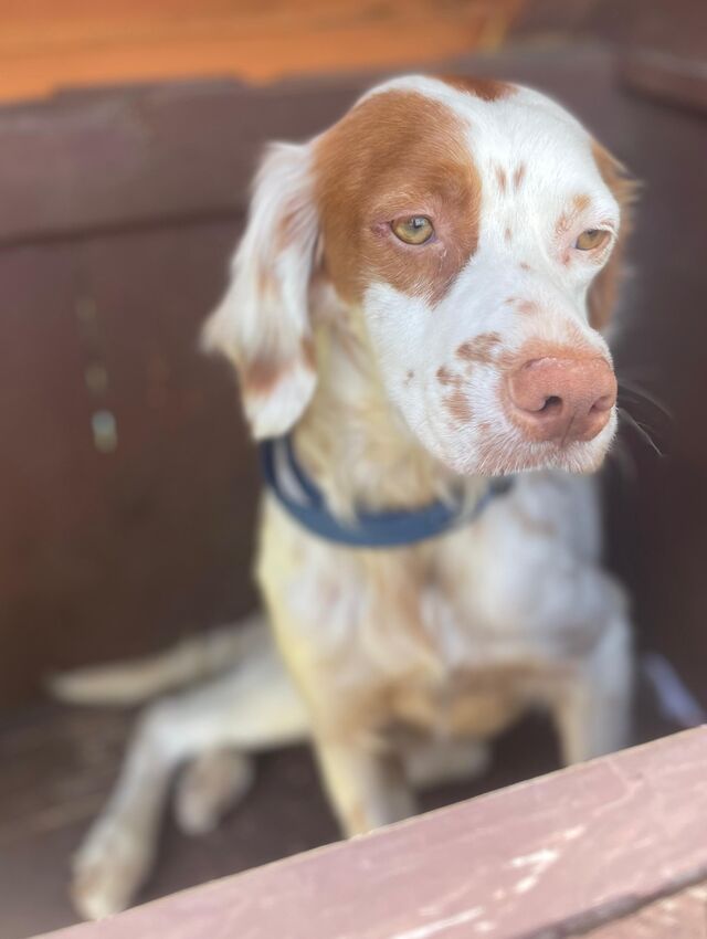 Beschreibung: Vorgeschichte Die junge Bretonenhündin CHLOE ist gemeinsam mit ihrer Mutter Grace und ihren Geschwistern in das Tierheim des Tierschutzvereins Pro Animal auf La Gomera gekommen. Für sie beginnt nun ein neuer Lebensabschnitt.