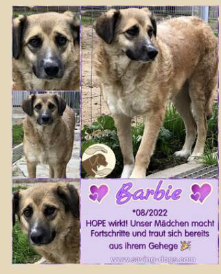 Die hübsche Maus hat noch einige Hürden vor sich, bis sie das fröhliche, vertrauensvolle Mädchen ist, das sie sein sollte. Aber sie wird das mit unserer Hilfe schaffen. Wir nehmen Euch deshalb von Anfang an ganz bewusst mit auf diese emotionale Reise. Es gibt nichts Schöneres, als einen Angsthund aufblühen zu sehen. Bleibt bei Barbie und ihrem Weg zurück ins Leben!
