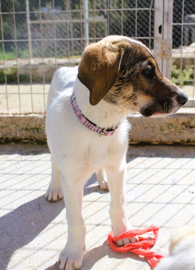 Saphira ist eine kleine, zarte Hündin mit einem besonders feinen Gespür für ihre Umgebung. Gemeinsam mit ihren Geschwistern Perl, Sterling, Jade und Coral sowie ihrer Mutter hat sie ihre ersten Lebenswochen als Streunerin auf Aegina verbracht – eine Zeit, die Spuren hinterlassen hat, aber auch ihren liebevollen Charakter geprägt hat. Inzwischen hat sie den ersten wichtigen Schritt in ein sicheres Leben gemacht und lebt im Tierheim, nachdem sie zuvor in einer Pflegestelle zur Ruhe kommen durfte. Ihre Mutter hat bereits ihr Glück gefunden und wurde adoptiert – nun wartet auch Saphira auf ihr eigenes Zuhause.