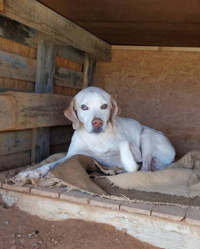 Auf der Finca lebt Pierre aktuell in einem kleinen Seniorengehege zusammen mit zwei älteren Podencas. Die ersten Tage waren für ihn ungewohnt, da er sich erst in das bestehende Rudel einfinden musste. Inzwischen hat sich jedoch alles gut eingespielt und die drei genießen gemeinsam die Sonne, beobachten das Geschehen auf der Finca oder liegen entspannt beieinander. Ab und zu wird auch noch gemeinsam gespielt.