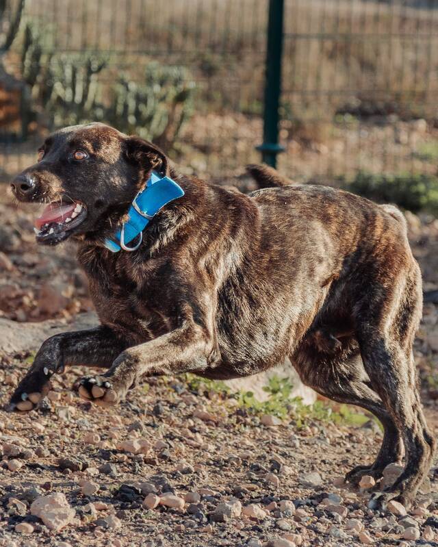 Leonardo und seine Kumpel Julieta und Bernie kommen aus einer Beschlagnahmung. Sein Besitzer hat auch die alte Hundedame Ginny einfach ausgesetzt. Leonardo lebte in einem engem Raum zusammen mit 10 weiteren Hunden, sie wurden zwar verpflegt, aber die Versorgung war auf ein Minimum beschränkt. Die Tiere bekamen Nudeln und Linsen als Futter und hartes, altes Brot, das laut den Besitzern, die Zähne bestens reinigen würde. Als unsere Pflegestelle Finca Esquinzo von der Beschlagnahmung erfuhr und Platz frei war, um ein paar Bardinos aufzunehmen, fuhren sie in die Perrera. Zunächst nahmen sie nur Bernie mit, aber eine Woche später holten sie auch Leonardo und Julieta ab.