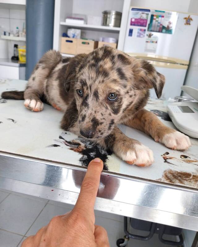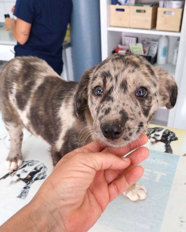 Sydney und ihr Halbbruder Darwin kamen Ende Februar in die Obhut unserer Inselpflegestelle Sarah. Die beiden Welpen sind Halbgeschwister, haben unterschiedliche Mütter (Bardinas), aber denselben Vater – einen Australian Shepherd. Sydney wurde drei Wochen früher geboren als Darwin. Aus zwei Würfen blieben nur Sydney und Darwin übrig, während ihre Geschwister bereits ein Zuhause gefunden hatten. Deshalb entschloss sich Sarah, die beiden zurückgelassenen Welpen aufzunehmen und ihnen die Möglichkeit zu bieten, ein schönes Zuhause zu finden.