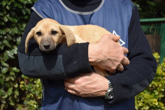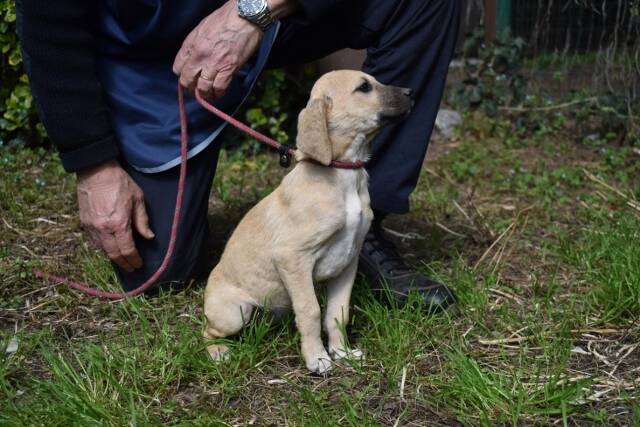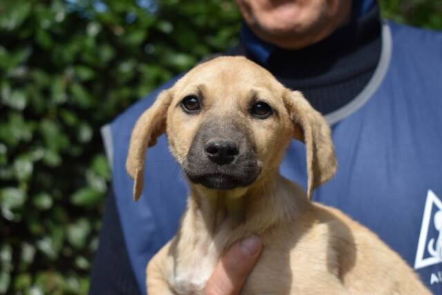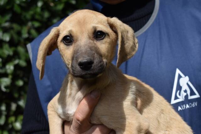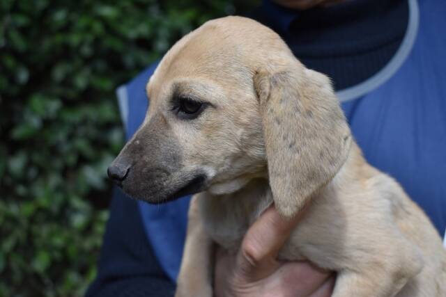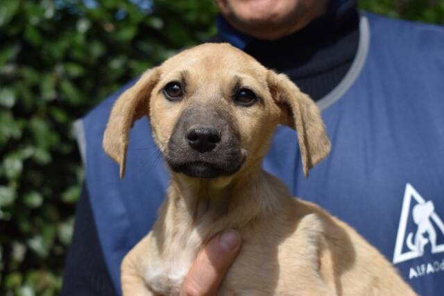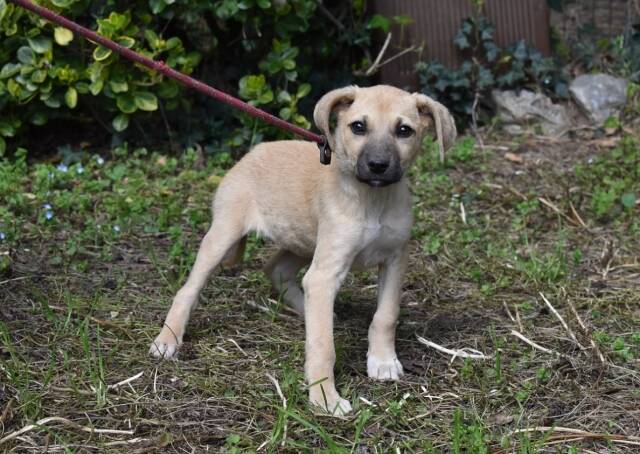 Das Hundemädchen mit hellem Fell und dunkler Schnauze, von vorne betrachtet einem Drei-Tage-Bart nicht ganz unähnlich, ist aktuell knapp drei Monate alt (Stand März 2026) und etwa 30 cm hoch. Sie sei lieb und relativ selbstbewusst, haben uns die mit uns befreundeten Tierschützer berichtet, nachdem sie unser Zuckeschnütchen besuchen durften. Sie sei ihrem Alter entsprechend neugierig und unternehmungslustig und habe sogar bei einem Versuch mit der Leine kommentarlos und wie ein Profi mitgemacht.