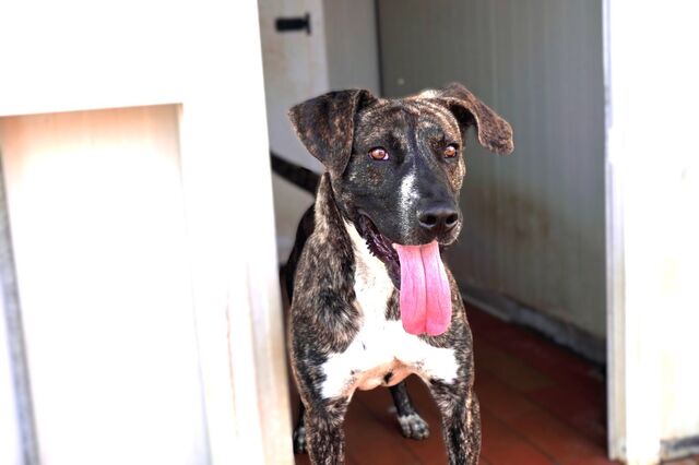 Wie bin ich? Ich bin zu einem schönen, stattlichen Kerl herangewachsen – einem typischen Dogo Sardo, wie man hier auf Sardinien sagt: kräftig, wachsam und mit einem Herz voller Feuer. Früher war ich ein bisschen schlaksig, aber jetzt passt mein Körper perfekt zu meinen Pfoten. Mein Fell ist immer noch gestromt wie Wellen, meine Knickohren wippen fröhlich, wenn ich laufe, und auf meiner Nase sitzt dieser kleine weiße Klecks, der mich unverwechselbar macht. Power und Lebensdurst habe ich noch immer! Ich will rennen, entdecken und endlich die Welt außerhalb dieser Mauern erleben. Das ewige Gebell ringsum stresst mich, und vielleicht bin ich deshalb manchmal unruhig. Mir fehlt Bewegung, Ruhe – und vor allem ein Mensch, der mich liebt. Menschen finde ich großartig! Ich genieße jede Aufmerksamkeit, jedes freundliche Wort, jede Berührung. Immer wenn ich Besuch von den STREUNERHerzen bekomme, ist das ein echtes Highlight! Ich durfte raus aus meinem Zwinger, bin fröhlich hin und her gerannt und habe alle begeistert begrüßt. Solche Momente sind selten, aber sie zeigen, wie viel Lebensfreude in mir steckt.