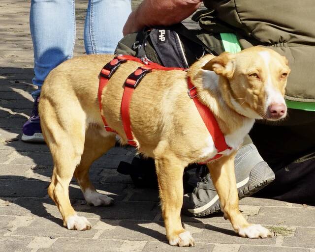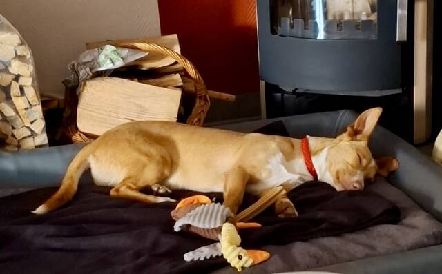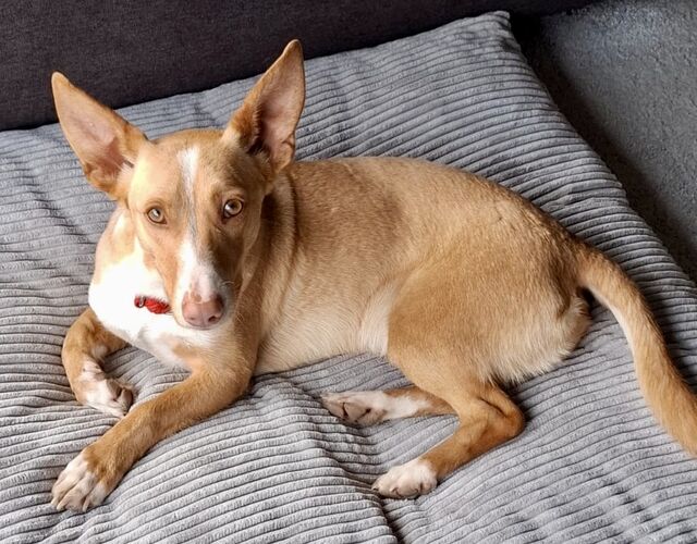 Goofy ist ein herzensguter Hund. Er ist aufgeweckt und unheimlich verschmust. Er verhält sich zuhause sehr ruhig und liegt am liebsten auf seinem Kissen und chillt. Gegenüber Kindern ist er vorsichtig und wenn es ihm zu viel wird, dann geht er einfach weg. Lauten Krach zuhause, Alltagsgeräusche und Kinderlärm, machen ihm gar nichts aus. Draußen an der Leine läuft er relativ locker und lässt sich sehr gut halten. Er rennt nicht voraus und schaut nach den Bezugsmenschen. Mit den meisten fremden Hunden, die wir unterwegs getroffen haben, war er verträglich und nie bösartig, also hat sie nie angebellt oder sowas. Fremden Menschen ist er recht zutraulich und neugierig. Bei uns hat er nachts in einer etwas größeren Box geschlafen, was auch super funktioniert hat. Er ist auch definitiv für eine Familie mit Kindern geeignet, da er ein sehr ruhiges Wesen hat. Allerdings alleine bleiben schafft er noch nicht. Er wird dann nervös und bellt, aber beruhigt sich sehr schnell wieder, wenn man heimkommt.