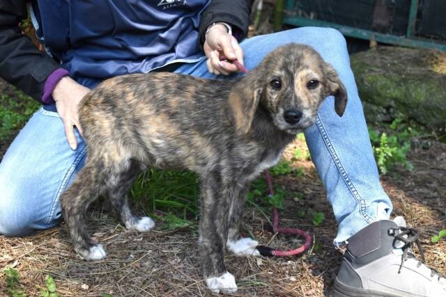 Uvaldo - der Vorsichtige mit dem großen Herzen: Hallo, ich bin Uvaldo. Ich lebe hier mit meinen Brüdern und den anderen Welpen zusammen. Die geben mir Sicherheit, denn manchmal bin ich noch ein bisschen unsicher. Ich brauche ein kleines bisschen Zeit, um mich an neue Menschen zu gewöhnen. Am Anfang bleibe ich lieber vorsichtig und schaue mir alles genau an. Aber wenn ich merke, dass man es gut mit mir meint, dann lasse ich mich auch streicheln und anfassen, ganz ohne Probleme. Die Menschen sagen, ich bin gutmütig. Und neugierig bin ich auch, nur eben ein bisschen langsamer als Ugoletto und Uffy. Ich glaube, ich brauche Menschen, die mich verstehen. Die mir Zeit lassen und mich nicht drängen. Dann kann ich auch Vertrauen fassen. In mir steckt vermutlich ein kleiner Jagdhund. Das bedeutet, dass ich später sicher gerne draußen unterwegs sein werde.