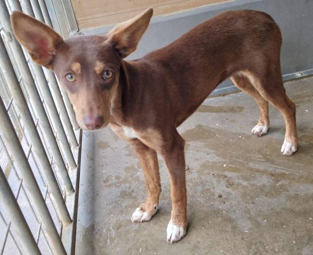 Carlota wurde in der Nähe einer Autobahn aufgegriffen – eine absolut lebensgefährliche Situation. Zum Glück entdeckte ein Tierfreund die junge Hündin rechtzeitig und fing sie ein. Nun lebt Carlota im Refugio und wartet auf ein sicheres Zuhause.