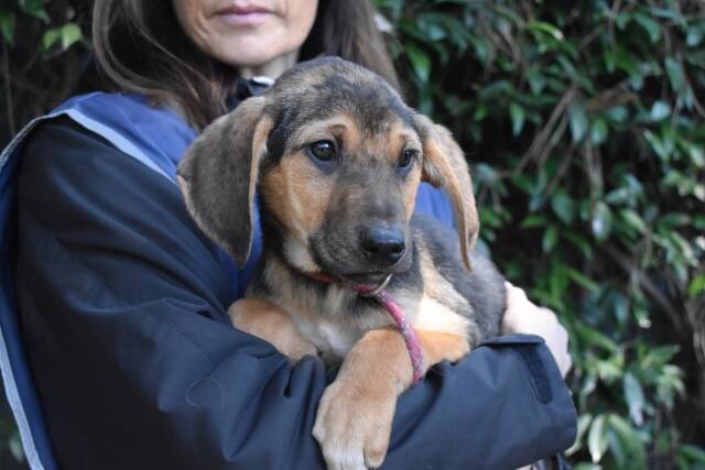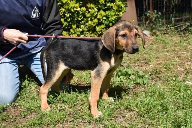Ugoletto – der kleine Entdecker: Hallo, ich bin Ugoletto. Ich lebe hier mit meinen Brüdern und anderen Welpen zusammen. Und ich kann dir sagen: Es ist hier überhaupt nicht schön. Die Menschen sagen aber, dass ich trotzdem gesellig, selbstbewusst und neugierig bin … und ja, das stimmt wohl. Ich finde eigentlich alles spannend, obwohl es hier eigentlich gar nichts zu erkunden gibt. Einfach nur rumsitzen fällt mir aber schwer, ich möchte lieber schauen und schnuppern. Ich bin ein eher lebhafter kleiner Kerl, der sich freut, wenn etwas passiert. Und ich glaube, dass ich später richtig viel Spaß daran haben werde, draußen unterwegs zu sein – denn meine Nase sagt mir, dass ich ein kleiner Jagdhund bin. Ich suche Menschen, die Lust haben, mit mir aktiv zu sein. Die mir zeigen, wie die Welt funktioniert, und die genauso gern draußen sind wie ich. Natürlich muss ich noch viel lernen, aber ich bin bereit!