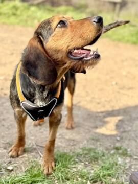 Loreen wurde etwa 2023 geboren und hat eine Schulterhöhe von 49-51 cm. Sie ist gechippt, geimpft und auch kastriert.