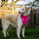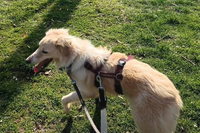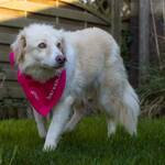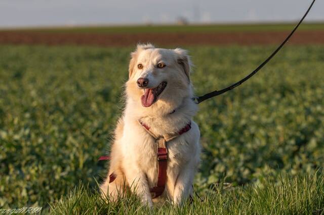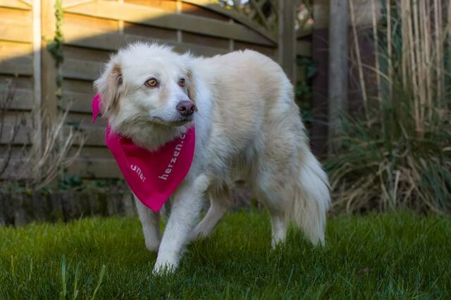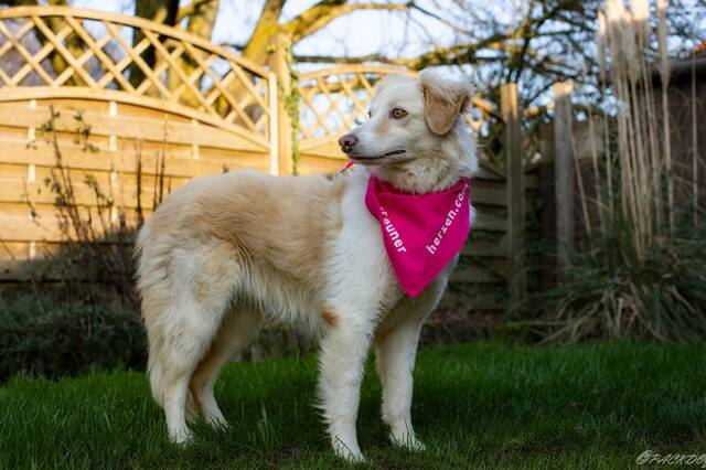 Aktuell geht sie mit Schleppleine in den Garten. Hier fühlt sie sich aber noch nicht sehr wohl und will meist schnell wieder ins Haus. Dann kreiselt sie um ihre Menschen herum, aber auch hier macht sie tolle Fortschritte und wird ruhiger.