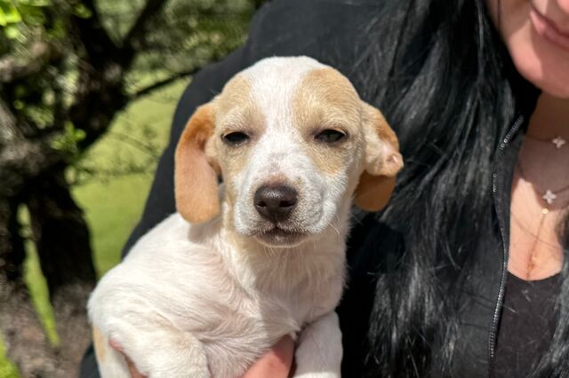 Name: Felina Geboren: ca. 06.12.2025 Rasse: Chihuahua-Dackel-Mischling Geschlecht: weiblich Schulterhöhe: ca. 22 cm - Stand 22.03., im Wachstum Gewicht: ca. 2,7 kg - Stand 22.03., im Wachstum Kastriert: nein Geimpft: ja Gechippt: ja Farbe: weiß-beige Mittelmeercheck: Test folgt nach Einreise Krankheiten: keine bekannt