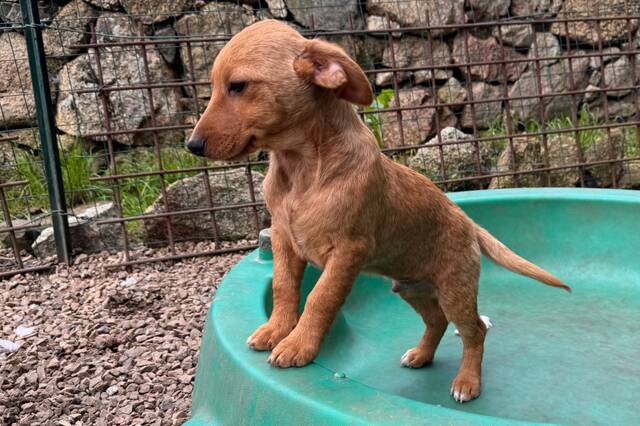 Name: Ferdi Geboren: ca. 06.12.2025 Rasse: Dackel-Segugio-Mischling Geschlecht: männlich Schulterhöhe: ca. 28 cm - Stand 22.03., im Wachstum Gewicht: ca. 5 kg - Stand 22.03., im Wachstum Kastriert: nein Geimpft: ja Gechippt: ja Farbe: Fulvo/braun Mittelmeercheck: Test folgt nach Einreise Krankheiten: keine bekannt