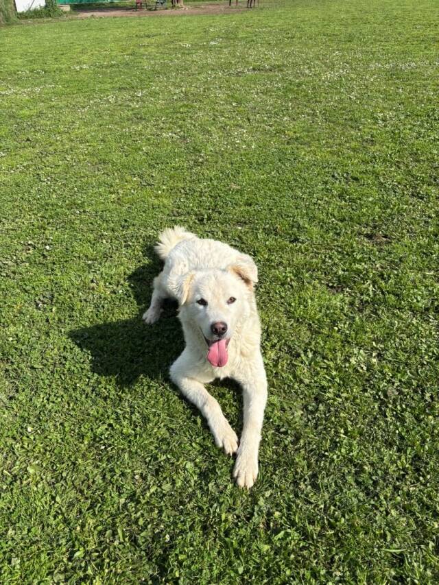 Doch in der vergangenen Zeit sind wir nicht ganz untätig geblieben. Cornelius hat einen der wenigen Plätze für Übungsstunden mit der Trainerin ergattert. Für einen Maremmano-Mischling strotzt er nur so von Energie, Neugier und Arbeitswillen - immer gepaart mit seiner ungestümen und distanzlosen Art. (Den ganzen Tag bei einer Schafsherde herumstehen oder -liegen, wäre wohl niemals das Passende für ihn gewesen.)