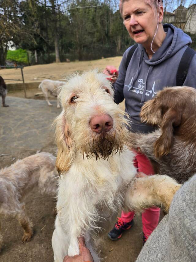 04/2026: Ragnieri ist der italienische Name für Rainer. Ragnieri ist ein hübscher, sehr liebenswerter Spinone-Rüde. Er mag Menschen sehr gerne und sucht den Kontakt zu ihnen. Er ist sowohl mit Rüden als auch mit Hündinnen sehr gut verträglich. Aktuell lebt er in einer kleinen, privat geführten Auffangstation in einem gemischten Rudel. Ragnieri ist noch jung, er spielt sehr gerne mit den anderen Hunden und rennt auch gerne im Garten rum. Im Haus ist er eher ruhig.