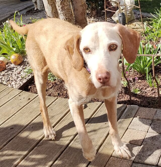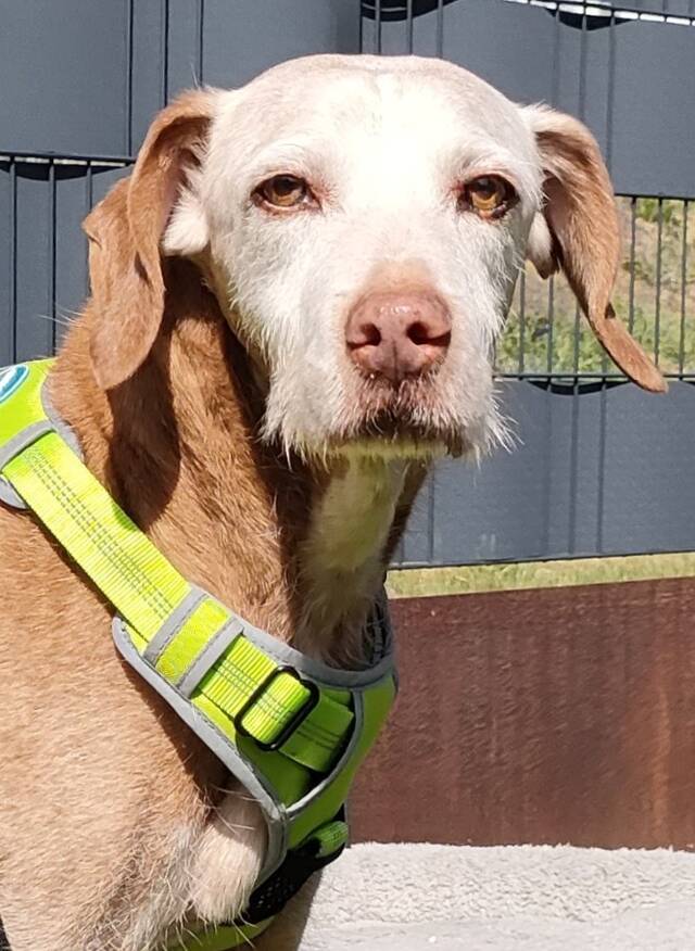 Nun mal ganz von vorne: Ich wurde noch vor Corona-Zeiten in Ubeda im Tierheim abgegeben, nachdem die dortigen Tierschützer informiert wurden, dass ich mich schon tagelang vor einem Cafe herumgetrieben habe. Ich hatte doch solchen Hunger und mein Vorbesitzer hat mich einfach ausgesetzt und ist davon gefahren.Was aus mir wird, war ihm völlig egal. Zum Glück für mich kam ich dann ins Tierheim, da gab es wenigstens ausreichend zu essen. Und weil es dort wirklich ausreichend gab und ich für mein Leben gerne fresse, und es dort wirklich den ganzen Tag nichts zu tun gibt ausser herumliegen und fressen, ist mir meine vorherige sportliche Traumfigur leider mit den Jahren abhanden gekommen. Was sollte ich schon den ganzen Tag tun ausser warten, auf die freiwilligen Helfer, die einmal am Tag vorbeikamen oder darauf, dass mich vielleicht doch noch jemand adoptiert. Und während ich da so herum gewartet habe, ist mein Gesicht immer weisser geworden und ich bin immer älter geworden. In meinem Pass steht zwar als Geburtsdatum der 17.9.2018, aber irgendwie denken alle, es könnten auch ein paar Jahre mehr sein. Genau weiss es keiner. Vielleicht findet sich ja jemand, dem es nicht ganz so wichtig ist, wie alt ich bin.
