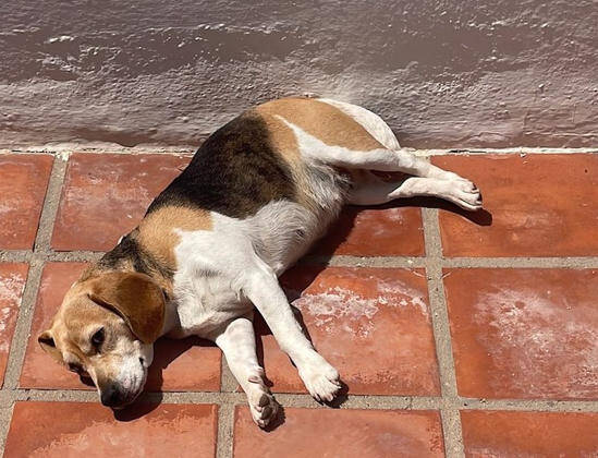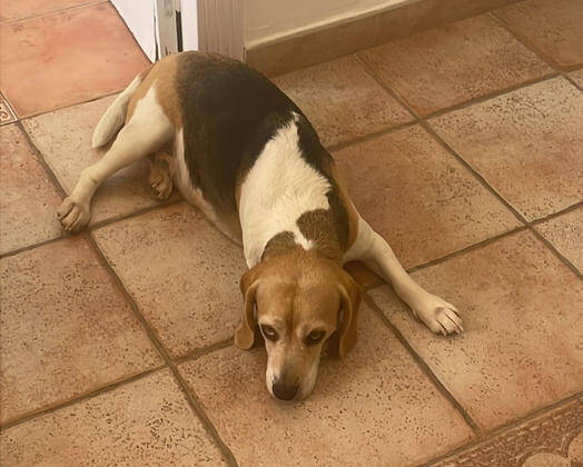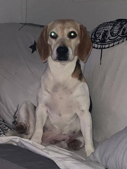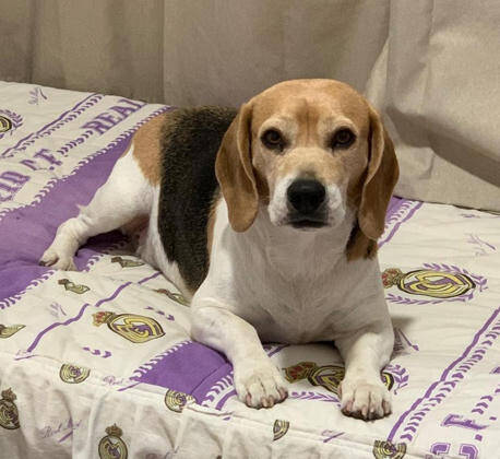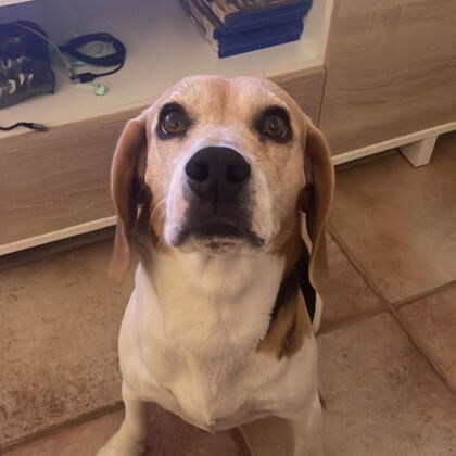Die Hündin ist ein Beagle (-Mischling), diese entschlossenen und intelligenten Hunde wissen genau, was sie wollen, und ohne konsequente Erziehung entscheiden sie gerne selbst, wo es langgeht. Seinem Erbe als Jagdhund verdankt er einen guten Geruchssinn und Schnelligkeit. So selbstbewusst und eigensinnig sie auf der einen Seite sind, so anhänglich und sozial kann diese Rasse sein, sie möchten am liebsten immer und überall dabei sein.