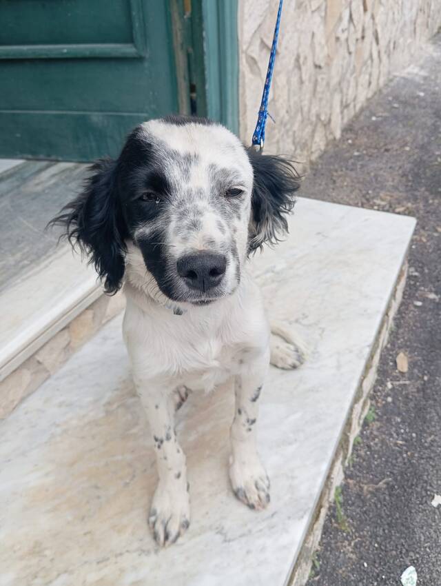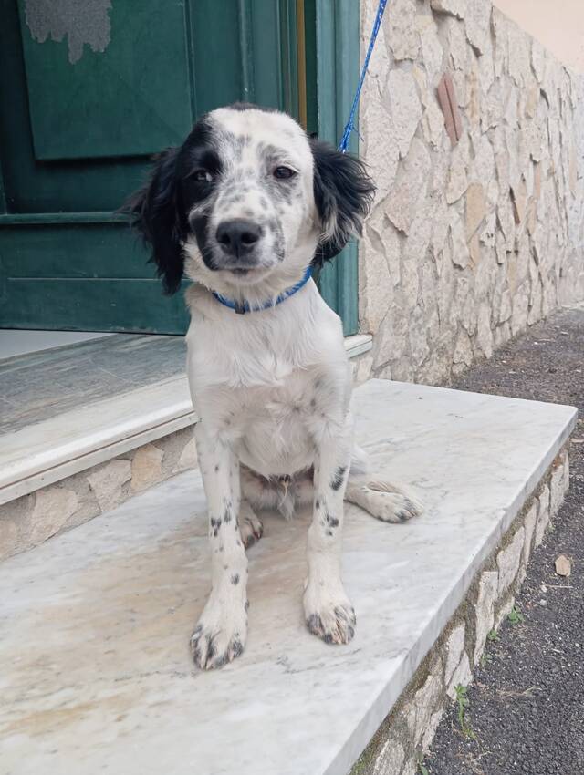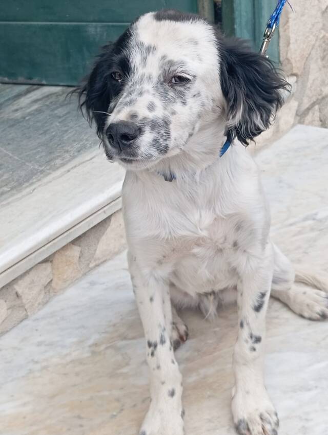 Tano ist ein 3,5 Monate alter Setterwelpe, der trotz seines schwierigen Starts ins Leben voller Lebensfreude steckt. Er wurde aus schlechter Haltung gerettet und ist dank einer engagierten Tierschützerin in Sicherheit.