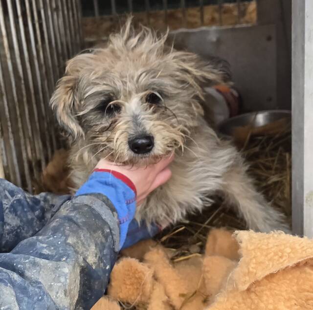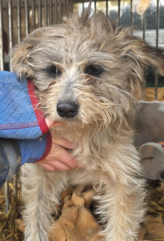 Silas, Mischlings-Junge, geboren am 25.02.2024, hat eine Schulterhöhe von ca. 40 cm und wiegt momentan etwa 10 kg.