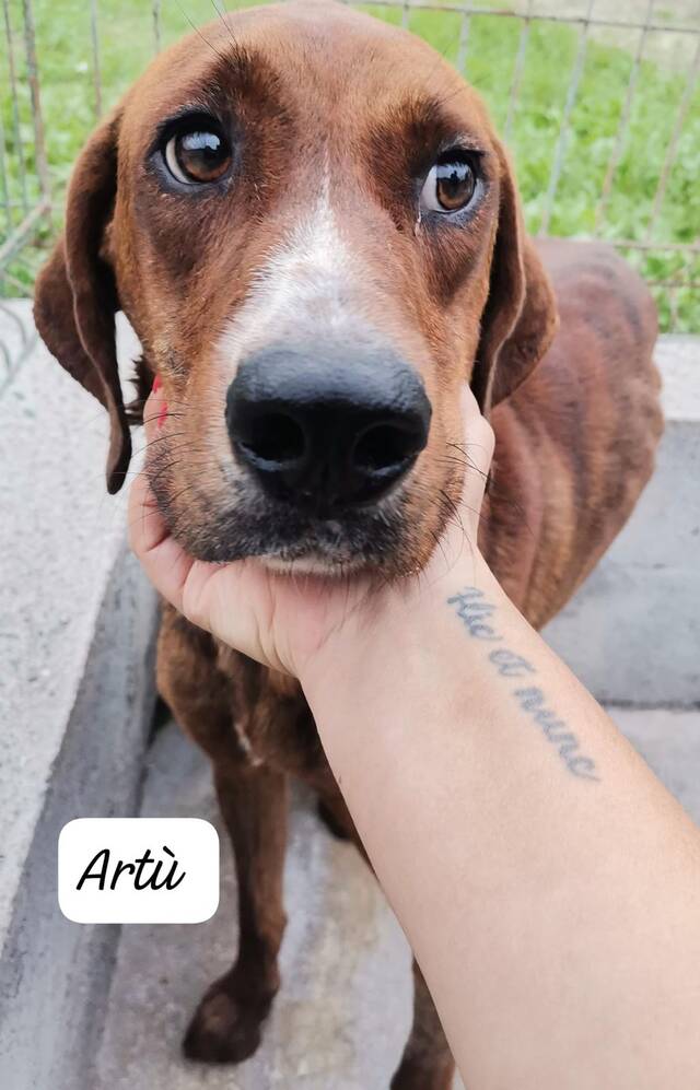 Beschreibung: Artù ist nach einer, im Dunkeln liegenden Vorgeschichte, im Alter von drei Jahren, für kurze Zeit in einem von der Schließung bedrohten kalabrischen Canile gelandet. Um Artù davor zu bewahren, schließungsbedingt weiterverlegt/deportiert zu werden, in eines der riesigen, lebensfeindlichen ‚Never come back- Canili‘, konnten italienische Tierschützer den feschen Herrn Hund in einer verantwortungsbewußt und fachkundig geführten Pension unterbringen, wo Artù nun darauf wartet, von seinen Menschen/seiner Familie entdeckt zu werden. Bis dahin benötigen wir für Artùs rettende Unterbringungsmaßnahme dringend Spenden, die seinen Pensionsplatz sicherzustellen helfen bis er,- hoffentlich ganz bald -, umziehen kann, in ein wirkliches Zuhause,- zu SEINER Familie.