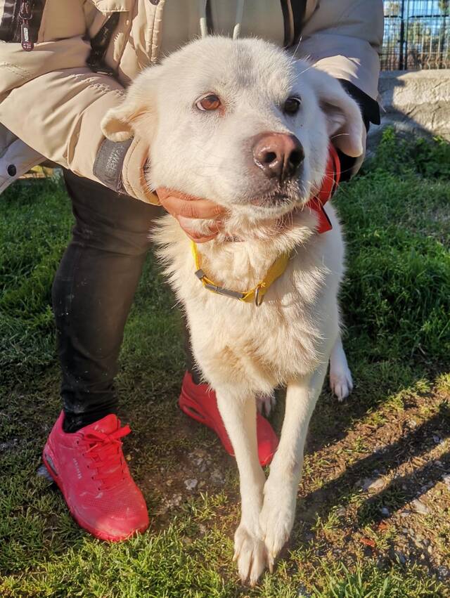Samantha ist eine freundlich-toughe, friedfertige und verträgliche Hündin von absolut entspannter Wesensart. Sie versteht sich gleichermaßen mit Artgenossen beiderlei Geschlechts, wie mit Vertretern der Samtpfotenfraktion,- mit Hühnern sowieso…… Wenn zukünftig noch liebevolle Menschen Samanthas Leben ‚rund machen‘ sollte es für sie keine große Sache sein, ihre, derzeit noch einigermaßen defizitären Kenntnisse in ‚Familienhundekunde‘, in diesbezügliche Sicherheit und Souveränität zu verwandeln. In Samanthas ‚Ahnengalerie‘ hängt mit großer Wahrscheinlichkeit der eine, oder andere Maremmano, dessen herden-, bzw. familienschutzhundliches Engagement unsere Zuckerschnute wohlmöglich weiterträgt und deshalb eines familiären Rahmens bedarf, der keinen hundlichen Zweifel daran aufkommen läßt, daß die Menschen ihres Herzens Willens und in der Lage sind, jederzeit für Sicherheit und gedeihliches Commitment Sorge zu tragen.
