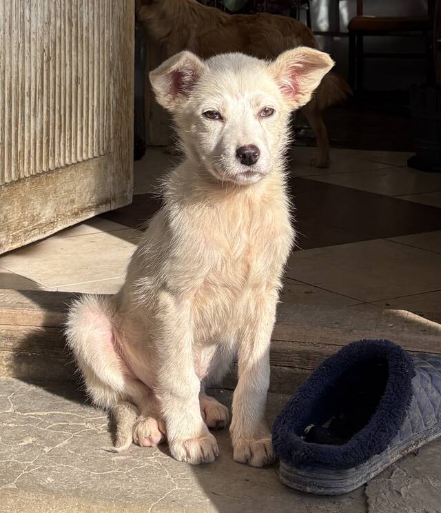 Mila, Mischlingsmädchen, geb. ca. 11/2025 (Geburtsdatum wird nachgereicht), hat derzeit eine Schulterhöhe von ca. 30 cm und wiegt momentan etwa 5 kg. Wir schätzen, sie wird ca. mittelgroß werden.