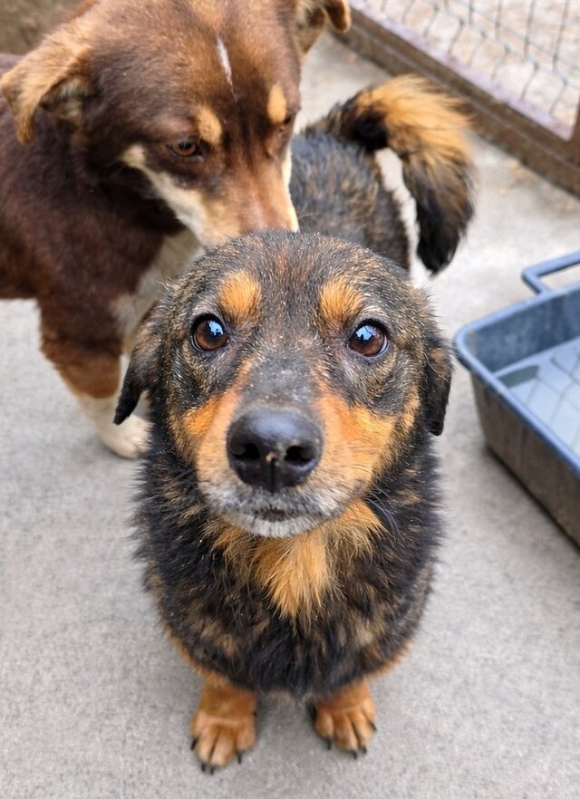 Jolie, Mischlings-Mädchen, geboren am 01.07.2023, hat eine Schulterhöhe von ca. 40-45 cm und wiegt etwa 10 kg.