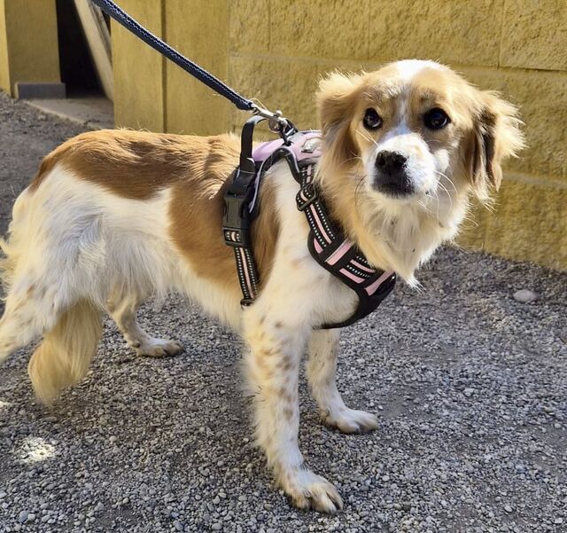 Alma (4631) Bretonen - Mix Hündin, geb. am 07.04.2022, hat eine Schulterhöhe von 39 cm und wiegt 9 kg.