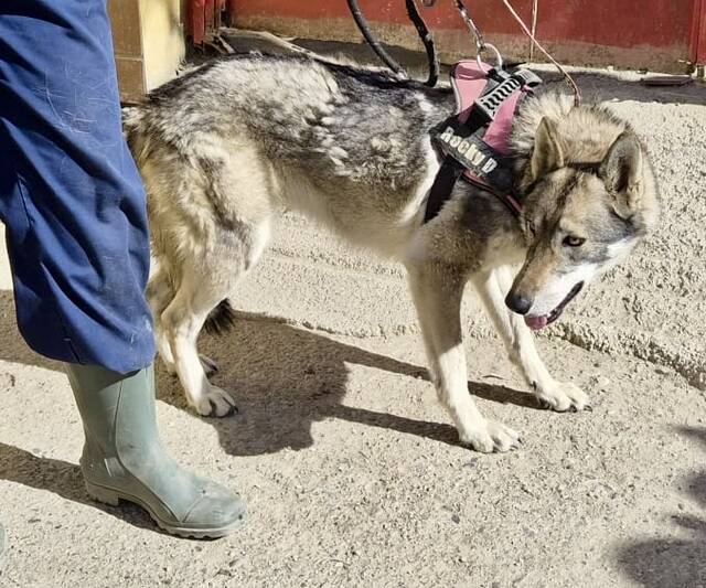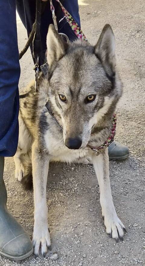 Lobo (4639) Husky - Mix Hündin, geb. am 04.04.2024, hat eine Schulterhöhe von 58 cm und wiegt 23 kg.