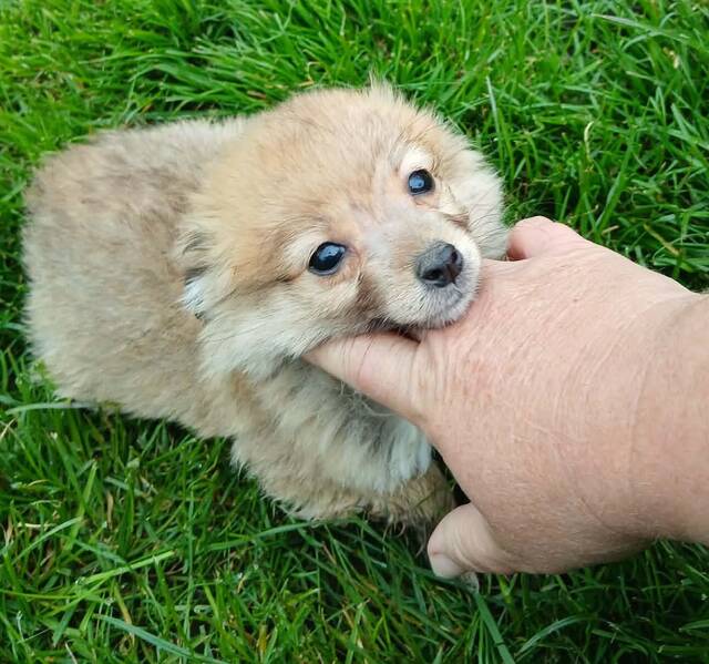 Greg, Mischlingsjunge, geboren am 23.12.2025, hat derzeit eine Schulterhöhe von ca. 20 cm und wiegt ca. 4 kg. Wir schätzen, er wird klein bleiben.