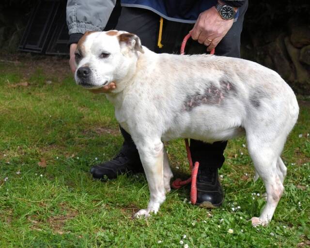 Die hübsche Abalyn fristet schon seit rund drei Jahren ihr Dasein in einem Hundelager/-gefängnis in Einzelhaft, wie auf einem verrotteten Kahn irgendwo im Ozean. Niemals Auslauf, niemals Abwechslung, niemals mit jemandem zusammen sein, niemals anständiges Futter. Dafür viel Einsamkeit, Langeweile, Stumpfsinn, verlorene Lebenszeit. In der Summe bedeutet das für einen Hund sehr viel Stress. Abalyns Körper hat vielleicht auf die Lebenssituation, vielleicht auf schlechtes Futter, vielleicht auf eine Mischung von allem zusammen mit einer Dermatitis reagiert. Diese juckende Hautkrankheit verheilt in der Regel gut und komplikationslos, sobald die Tiere in einem ruhigen, liebevollen Zuhause sind und tierärztliche Betreuung erhalten. Aber da, wo Abalyn derzeit vor sich hinvegetiert, gehört Fürsorge nicht zum Programm. So bleiben auch ihr Nabelbruch und das kleine Lipom am Brustbein unbehandelt. Zu allem Übel wurde bei Abalyn vor drei Jahren auch noch Leishmaniose diagnostiziert - eine unheilbare Krankheit, die aber mit einer sehr kostengünstigen, täglich zu verabreichenden Tablette sehr gut stabil gehalten werden kann (für weitere Infos zu sogenannten Mittelmeerkrankheiten siehe hier https://www.pro-canalba.eu/auslandstierschutz/mittelmeerkrankheiten/). Die Hunde, die das Pech haben, diese eine Pille nicht zu erhalten, sterben über kurz oder lang einen langsamen, schmerzhaften Tod.