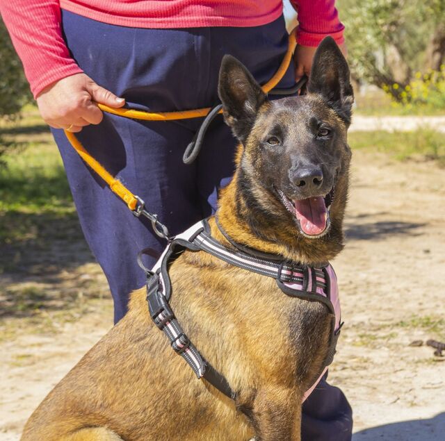 Beschreibung: Unsere Cata ist eine wunderschöne Malinois Hündin, die im Tierheim in Úbeda/Andalusien von einer Beschlagnahmung abgegeben wurde. Sie ist schätzungsweise im Mai 2022 geboren, hat eine Schulterhöhe von 61 cm bei 30 kg.